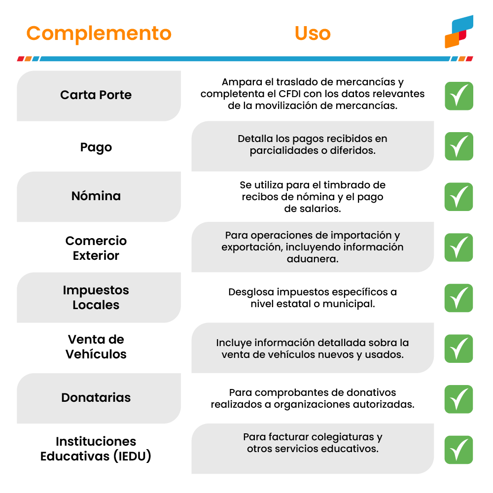 TablaComplementos Published 24/07/2025 at 1000 × 1000 in Complementos para facturas: ¿Qué son y cuál es su importancia? ← Previous Next →